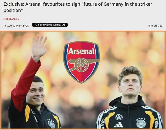 德国天空体育也说很多大俱乐部今夏会尝试收购这个特雷索尔迪,但没提到阿森纳,只看法尔克的消息很难有定论。