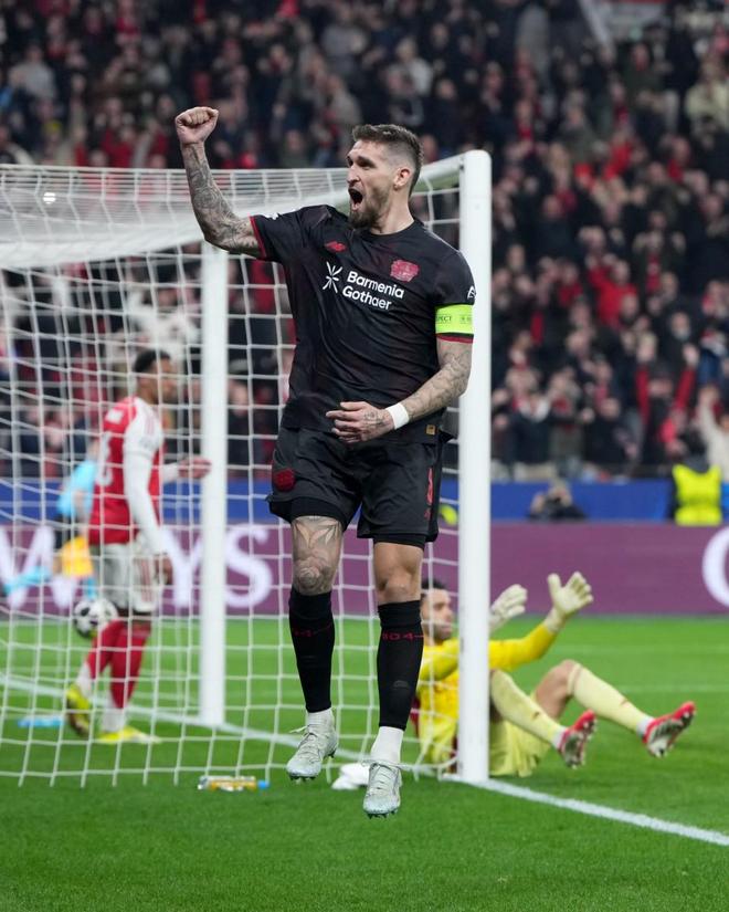 第46分钟勒沃库森队角球开到禁区内,后点安德里希抢点头球攻门得手,勒沃库森队1-0取得领先。第89分钟马杜埃凯突入禁区摔倒,裁判在观看VAR之后判罚点球,哈弗茨面对旧主一蹴而就,双方1-1回到同一水平线上。